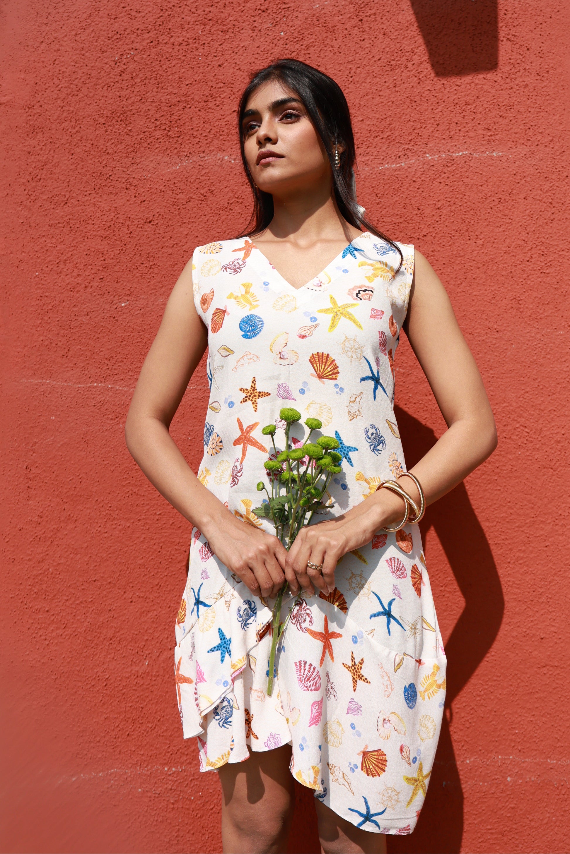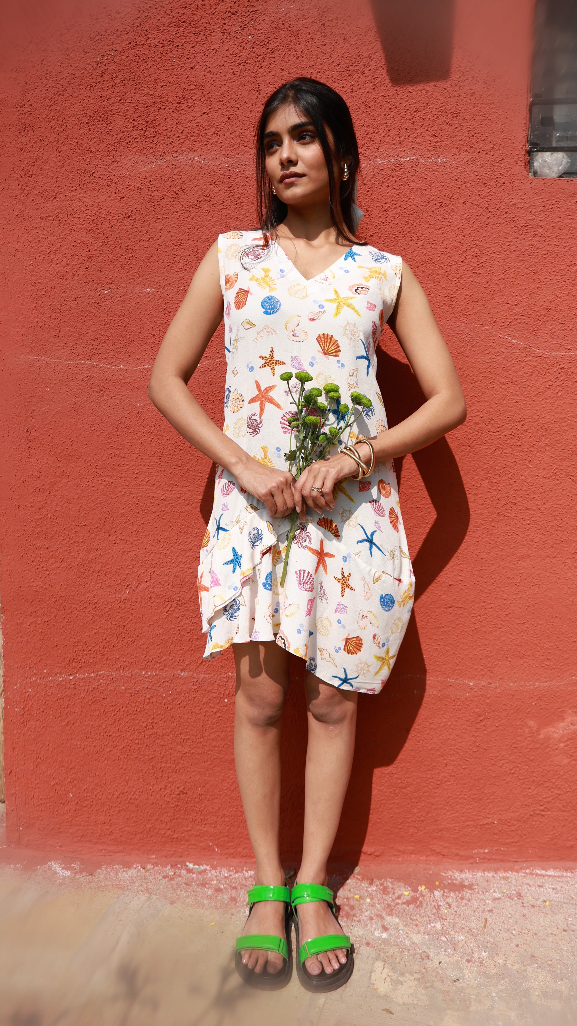 A cotton twill dress with a playful frill for added drama. Breezy, charming, and perfect for effortless dressing. Designed to bring a touch of seaside whimsy to your everyday style.
